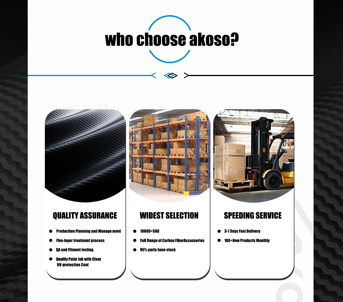 Choose AKOSO—your trusted partner in premium carbon fiber accessories solutions. Welcome to contact us to explore how we can help elevate your brand and business to the next level!