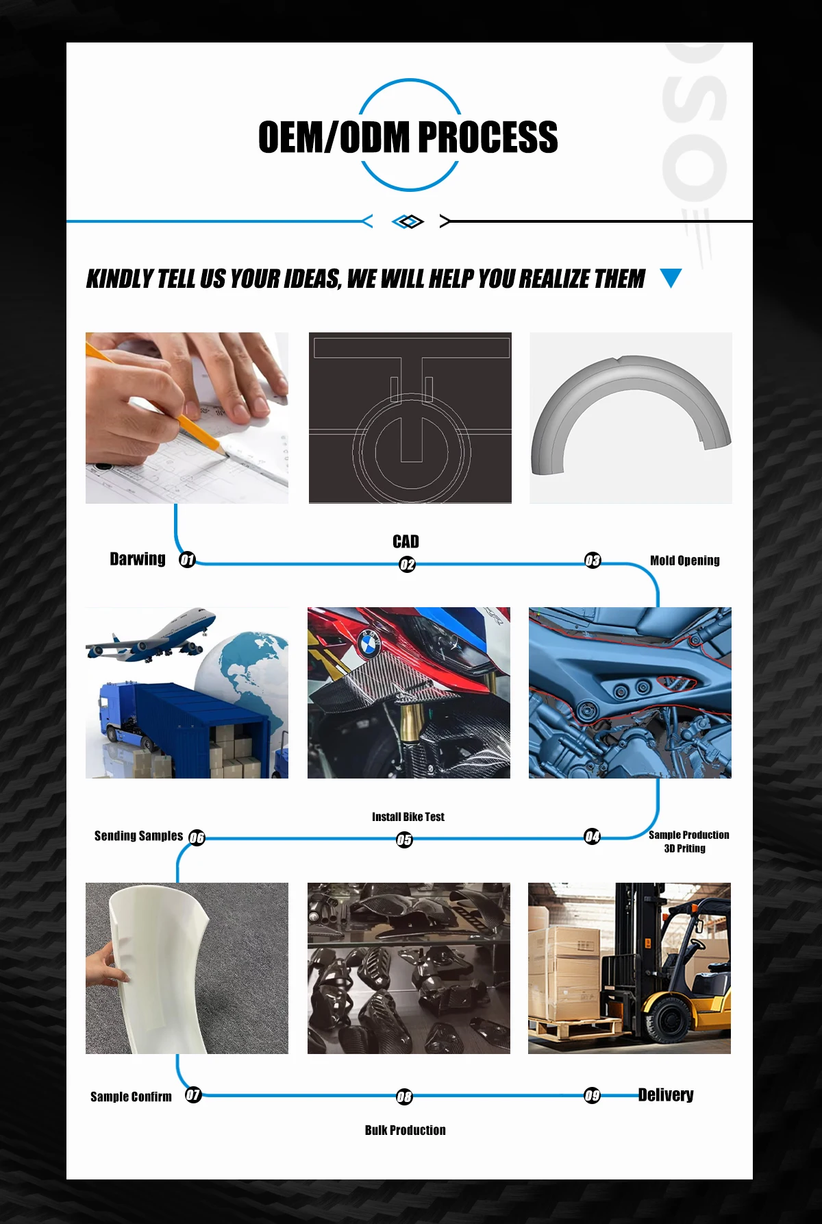 Welcome to AKOSO, Located in Foshan, Guangdong, with a highly skilled team of engineers and technicians, we provide a wide range of motorcycle carbon fiber accessories, including carbon fiber fenders, Winglets, Handguards, Belly pan, Fuel tank covers, Swingarm covers, Sprocket covers, Body fairings, and etc.